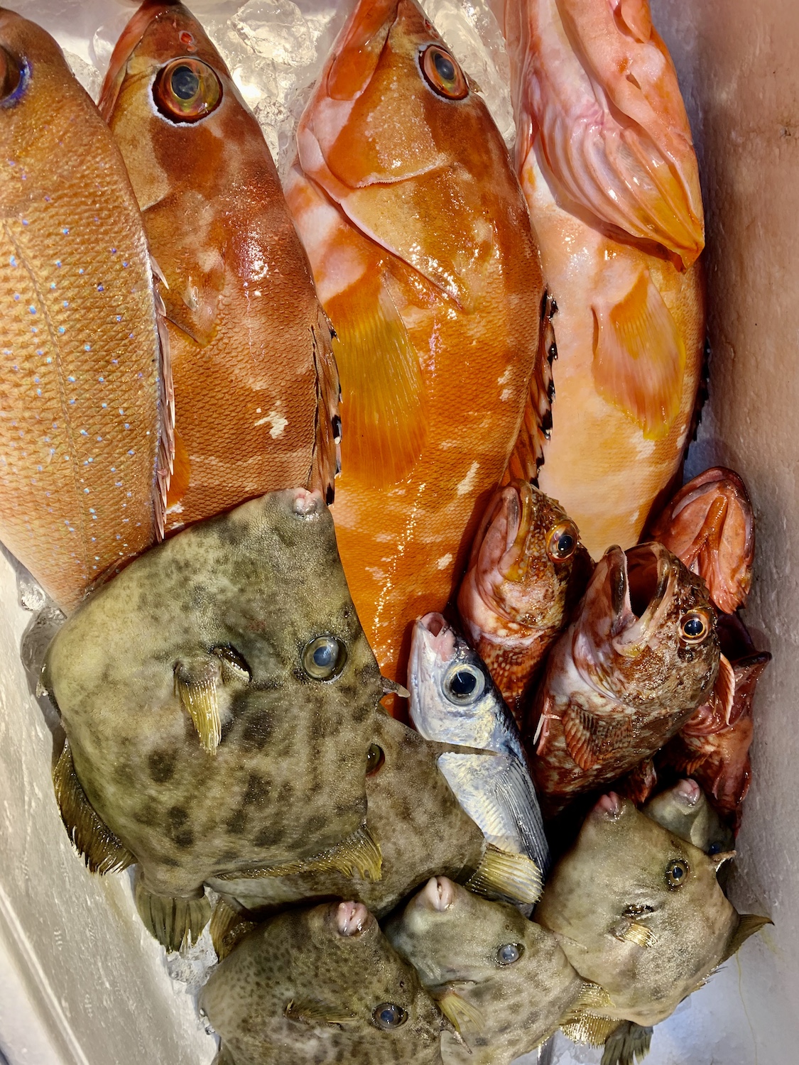 今日の朝まで泳いでた新鮮な魚たちですよ